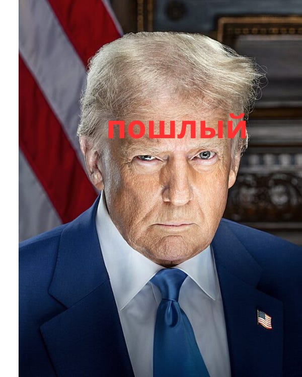 Last year, when Trump posted the word “blowjob” on Truth Social, trying to smear both Hilary Clinton and Kamala Harris, some Russian observers floated a word to describe him–пошлый, or poshlyi. Russia's most popular dictionary (by Ozhegov), says this adjective, pronounced posh-li, means “morally base, tasteless, and crass.”
